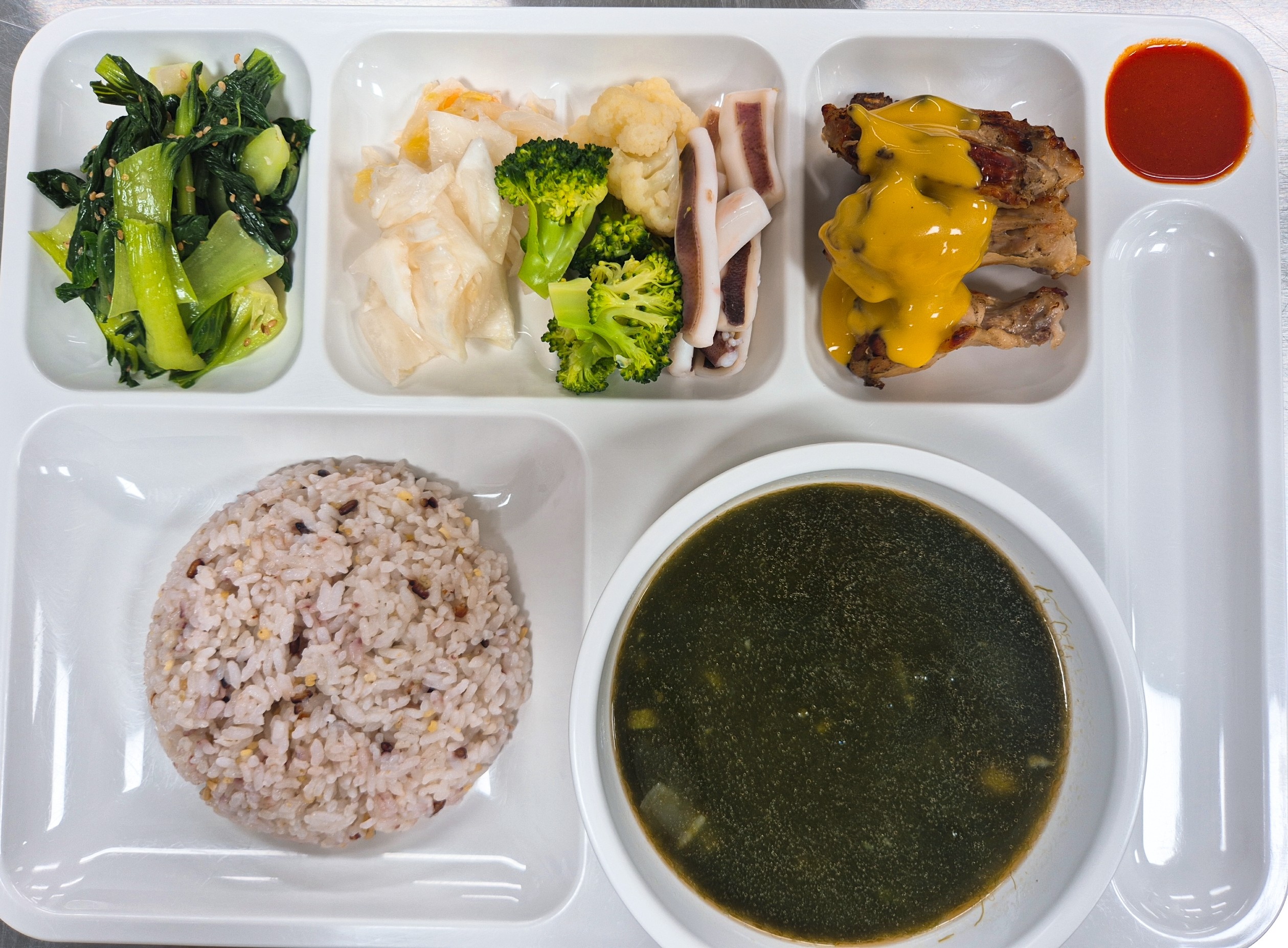 쌀(국내산),김치(배추,고춧가루:중국산), 두부(대두:외국산), 콩비지(대두:외국산), 쇠고기(호주산), 돼지고기(국내산), 닭고기(국내산), 오리고기(국내산),뱀장어(중국산), 낙지(베트남산), 명태(러시아산), 동태(러시아산), 고등어(국내산), 갈치(국내산), 오징어(국내산), 진미채(오징어:페루산), 참조기(중국산), 주꾸미(베트남산), 전복(국내산), 방어(국내산)
