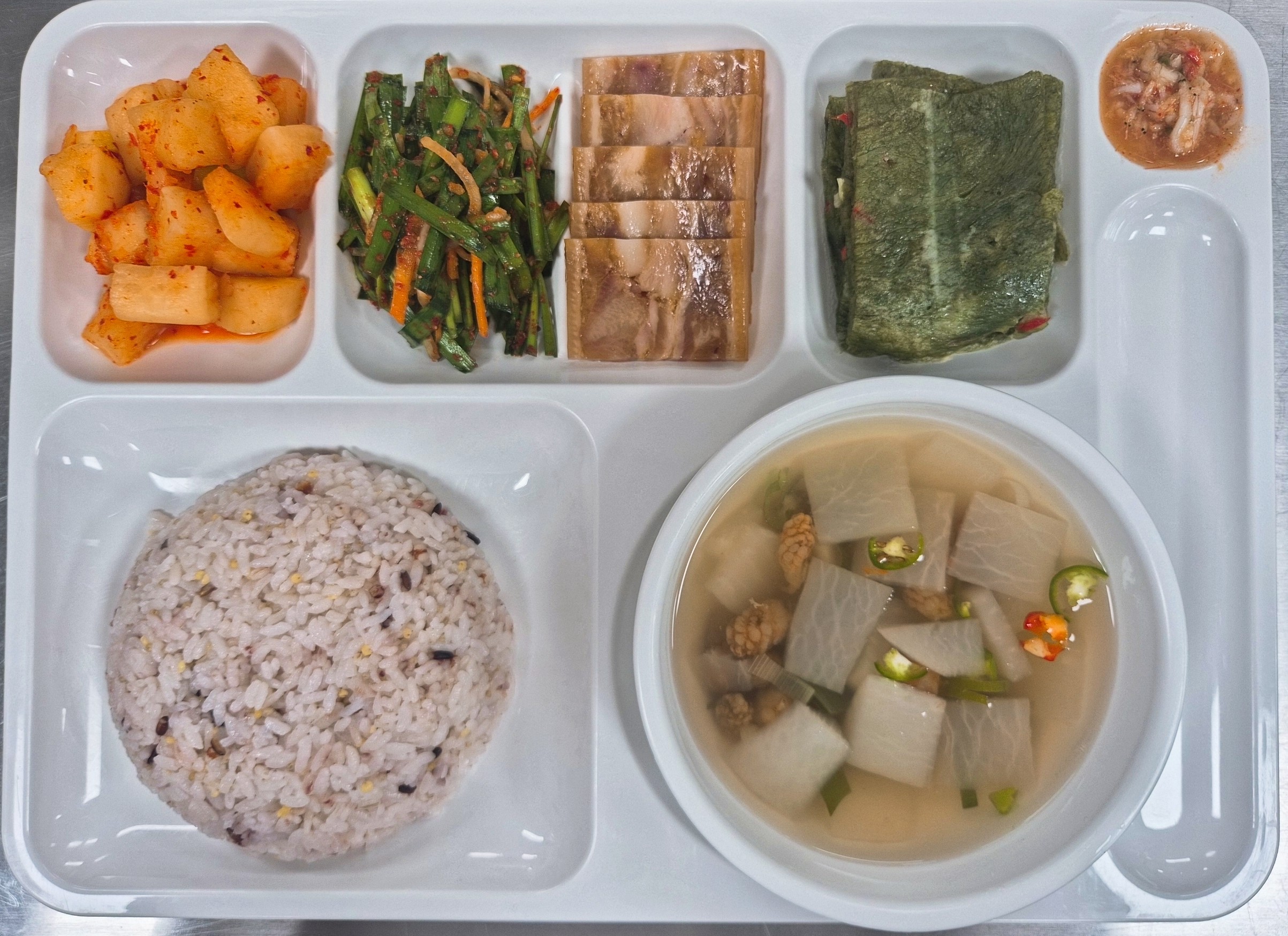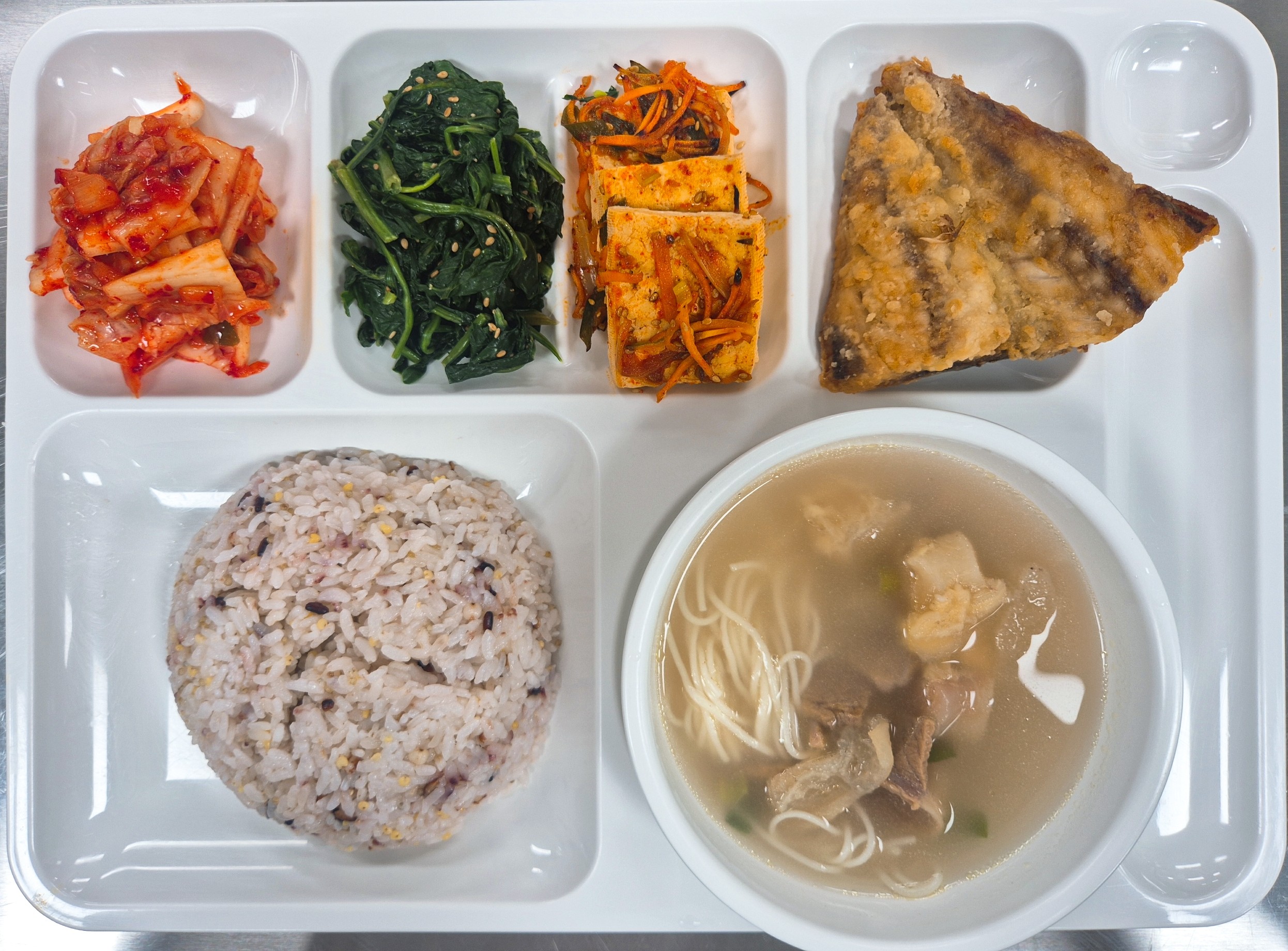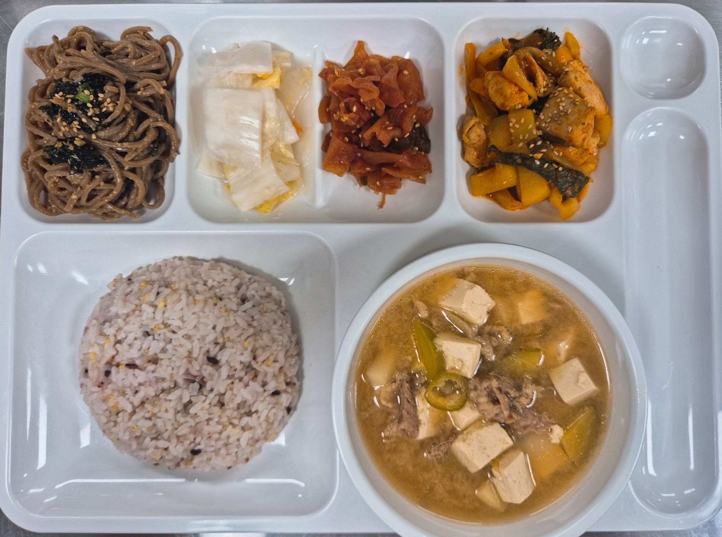 쌀(국내산),김치(배추,고춧가루:국내산), 두부(대두:외국산), 콩비지(대두:외국산), 쇠고기(호주산), 돼지고기(국내산), 닭고기(국내산), 오리고기(국내산), 낙지(베트남산), 명태(러시아산), 동태(러시아산), 고등어(국내산), 갈치(국내산), 오징어(국내산), 진미채(오징어:페루산), 참조기(중국산), 주꾸미(베트남산)