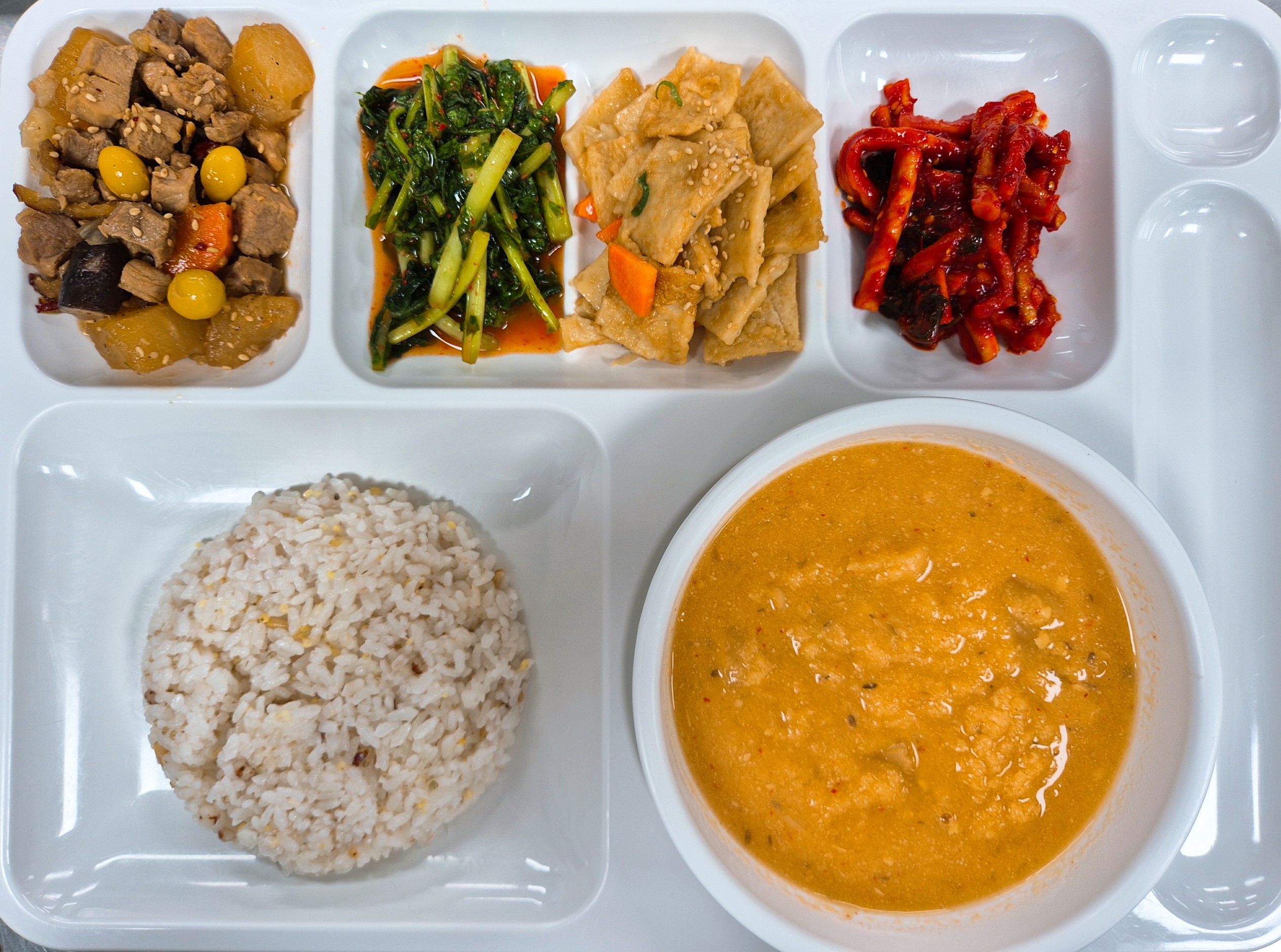 쌀(국내산), 김치(배추,고춧가루:중국산), 두부(대두:외국산), 콩비지(대두:외국산), 쇠고기(호주산), 돼지고기(국내산), 닭고기(국내산), 오리고기(국내산),뱀장어(중국산), 낙지(베트남산), 명태(러시아산), 동태(러시아산), 고등어(국내산), 갈치(국내산), 오징어(국내산), 진미채(오징어:페루산), 꽃게(중국산), 참조기(중국산), 주꾸미(베트남산), 전복(국내산), 방어(국내산)