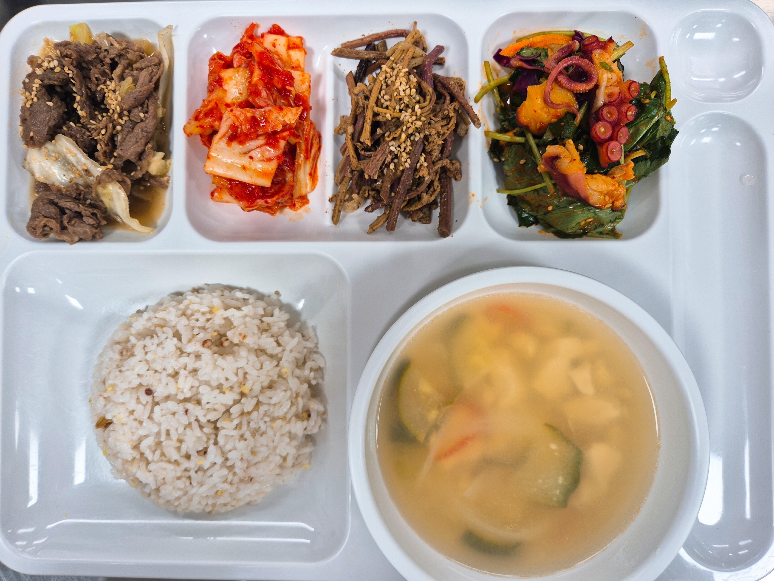 쌀(국내산), 김치(배추,고춧가루:중국산), 두부(대두:외국산), 콩비지(대두:외국산), 쇠고기(호주산), 돼지고기(국내산), 닭고기(국내산), 오리고기(국내산),뱀장어(중국산), 낙지(베트남산), 명태(러시아산), 동태(러시아산), 고등어(국내산), 갈치(국내산), 오징어(국내산), 진미채(오징어:페루산), 꽃게(중국산), 참조기(중국산), 주꾸미(베트남산), 전복(국내산), 방어(국내산)