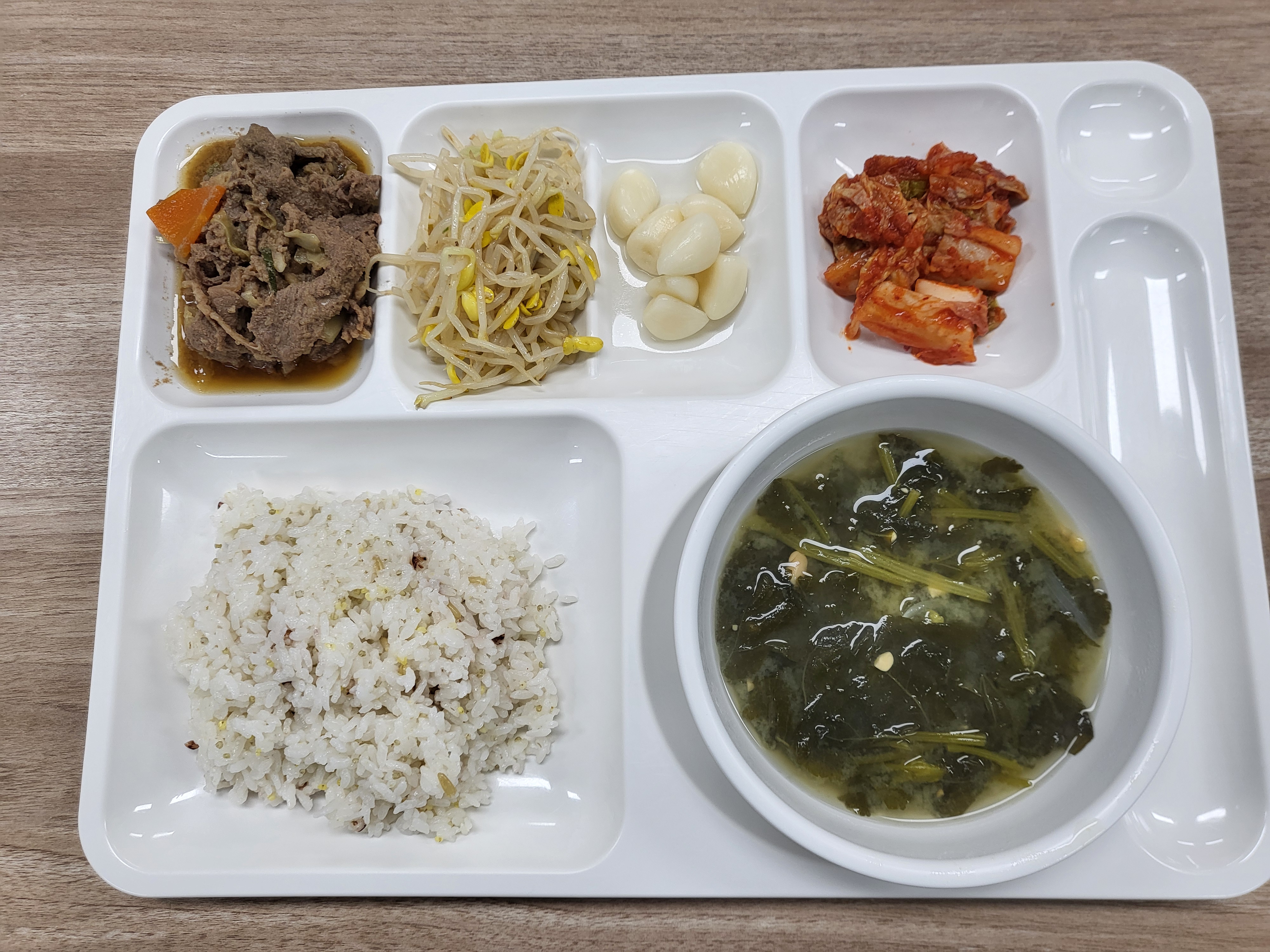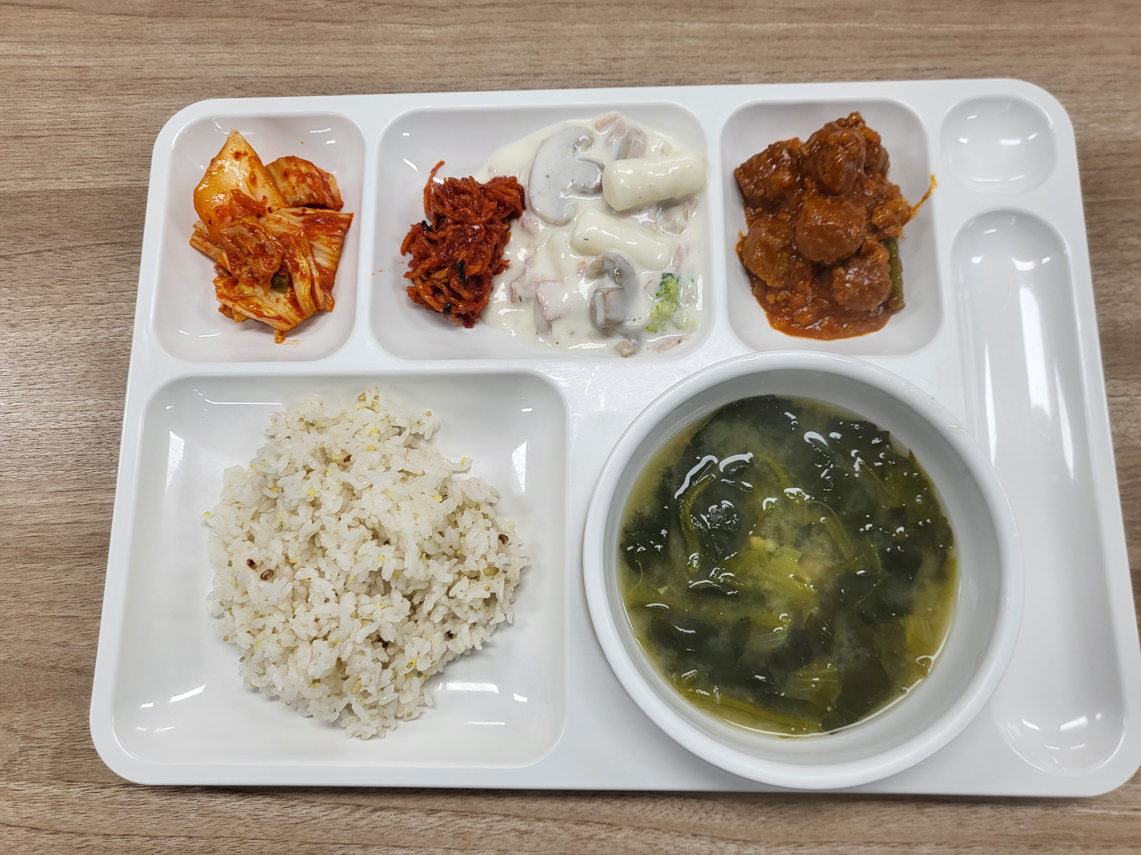 쌀(국내산), 김치(배추,고추가루:중국산), 두부(대두:외국산), 콩비지(대두:외국산), 소고기(호주산), 돼지고기(국내산), 닭고기(국내산), 북어채(러시아산), 차돌박이(미국산), 훈제오리(중국산), 탕수육(돈육:국내산), 바지락살(중국산), 미트볼(계육:국내산), 임연수(외국산),우렁살(국내산)