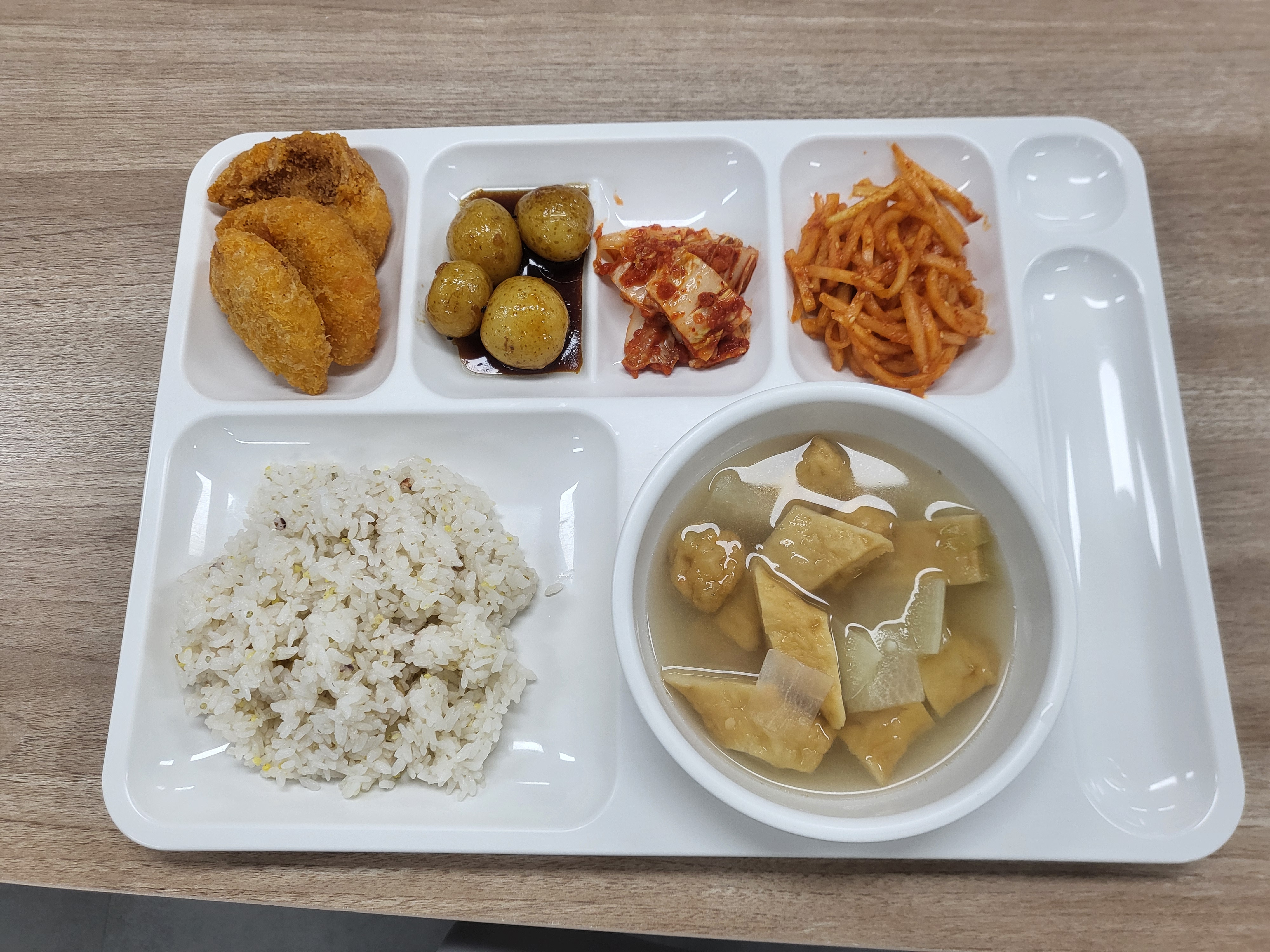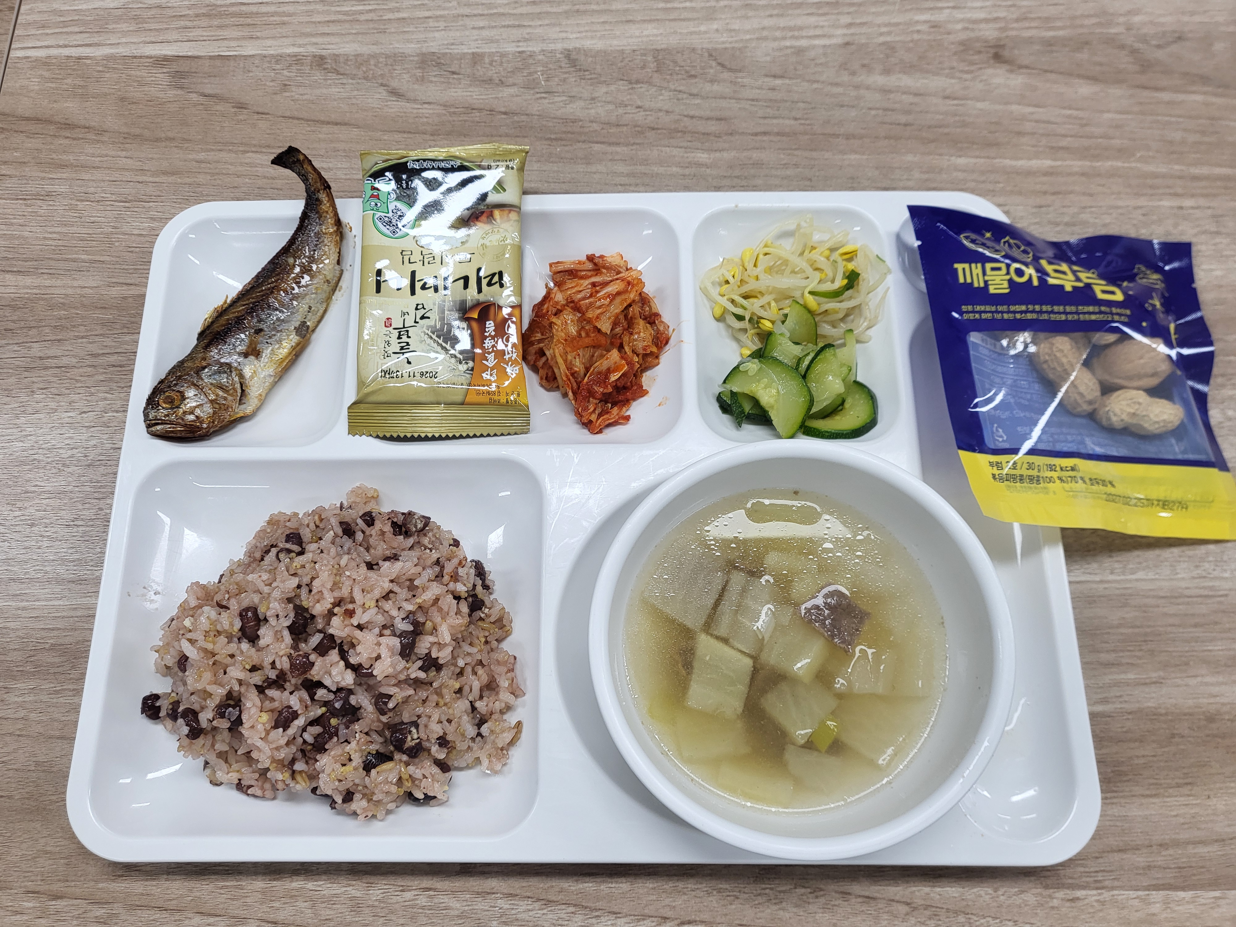 쌀(국내산), 김치(배추,고추가루:중국산), 두부(대두:외국산), 콩비지(대두:외국산), 소고기(호주산), 돼지고기(국내산), 닭고기(국내산), 건새우(중국산), 조기(중국산), 종합어묵(연육:외국산), 새우까스(새우살:중국산), 재첩살(중국산), 코다리(러시아산), 닭다리살(브라질산), 오징어(중국산), 북어채(러시아산), 추어탕(미꾸라지:국내산)
