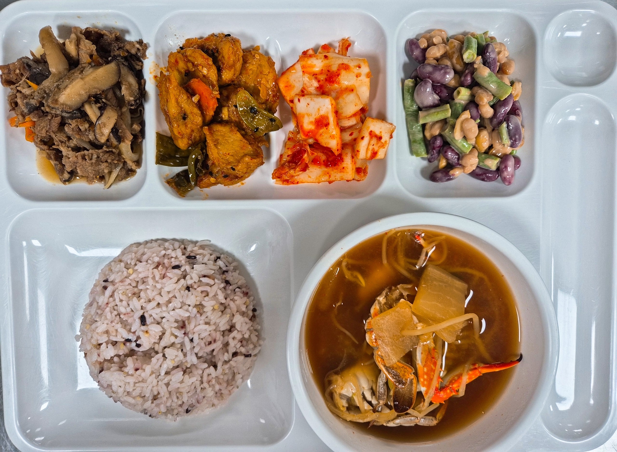 쌀(국내산), 김치(배추,고춧가루:중국산), 두부(대두:외국산), 콩비지(대두:외국산), 쇠고기(호주산), 돼지고기(국내산), 닭고기(국내산), 오리고기(국내산),뱀장어(중국산), 낙지(베트남산), 명태(러시아산), 동태(러시아산), 고등어(국내산), 갈치(국내산), 오징어(국내산), 진미채(오징어:페루산), 꽃게(중국산), 참조기(중국산), 주꾸미(베트남산), 전복(국내산), 방어(국내산)